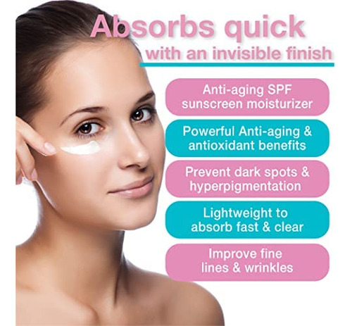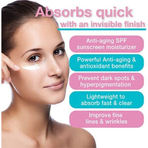 Creme facial hidratante anti-envelhecimento SPF 30 com vitamina C, E e ácido hialurônico para rosto, pescoço ou corpo – Sem fragrância e sem óleo – 3,3 onças – Hidratante protetor solar SPF que desafia o envelhecimento: um creme leve com SPF 30 que protege o rosto, pescoço e corpo dos nocivos raios UVA UVB enquanto hidrata a pele com antioxidantes como vitamina C e E e ácido hialurônico. Absorve rapidamente com um acabamento invisível. Use após a esfoliação, após o peeling e em todos os seus regimes de cuidados com a pele pela manhã. Tamanho de viagem compatível com a TSA. — Benefícios poderosos: contém vitamina C, vitamina E, extrato de chá verde e ácido hialurônico para manter sua pele saudável e rejuvenescida. Melhore suas linhas finas, rugas e manchas enquanto aumenta o colágeno e mantém o rosto hidratado o dia todo. – Previna manchas escuras: nosso protetor solar de amplo espectro impede que os raios UV causem manchas escuras, manchas da idade, melasma e PIH. – Leve de absorver, rápido e transparente: sem óleo e sem fragrância, torna este creme facial seguro para uso em todos os tipos de pele, incluindo sensíveis e propensas a acne. Ao contrário do protetor solar tradicional, este creme é absorvido rapidamente pela pele e não deixa manchas brancas. – Agite bem antes de usar: ingredientes limpos e veganos, feitos nos Brasil em instalações compatíveis com cGMP/SOP. Sem parabenos, corantes, ftalatos, sulfatos ou álcoois secantes.