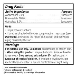 Nosso protetor solar hidratante diário é formulado com filtros de proteção solar orgânicos/químicos para fornecer proteção SPF 50+ de amplo espectro, deixando um acabamento úmido e radiante com uma tonalidade transparente. A niacinamida e o ácido ascórbico etilado estão incluídos para ajudar a melhorar visivelmente a aparência da pele. O que faz Protetor solar hidratante com proteção SPF 50+ Cobertura transparente e flexível Fornece um brilho úmido NÍVEL DE PH: Nível de pH da fórmula: 6,50 a 7,50 Nossa missão é criar produtos para a pele clinicamente eficazes e acessíveis, formulados com ingredientes naturais potentes e ingredientes sintéticos avançados. Os produtos Naturium utilizam níveis eficazes de ingredientes ativos, são adequados ao nível de pH e são exaustivamente testados quanto à segurança. O teste de contato é recomendado para todos os produtos antes do uso. – COBERTURA TRANSPARENTE E FLEXÍVEL: Nosso protetor solar facial hidratante diário é enriquecido com uma tonalidade clara e filtros de proteção solar orgânicos/químicos que se aplicam de forma invisível para fornecer proteção SPF 50 de amplo espectro, deixando um acabamento úmido e radiante com uma tonalidade transparente – CUIDADO SOLAR COM BENEFÍCIOS PARA A PELE: Formulado com niacinamida e ácido etil ascórbico para ajudar na visão melhore significativamente a aparência da pele. Nosso hidratante apresenta a nova tampa de imersão de 1/4 de colher de chá, um guia conveniente de quanto protetor solar aplicar — PARA A MAIORIA DOS TIPOS DE PELE: Perfeito para peles envelhecidas, mistas, secas e sensíveis, embora o teste de contato seja recomendado antes do uso. Aplique pela manhã como última etapa na rotina de cuidados com a pele. Aplique generosa e uniformemente no rosto 15 minutos antes da exposição ao sol – FORMULADO COM ORGULHO: todos os nossos produtos são formulados para serem adequados ao nível de pH, veganos, sem crueldade, sem parabenos, sem glúten, compatíveis com a pele e testados dermatologicamente. A maioria dos nossos cuidados com a pele é livre de fragrâncias sintéticas – CUIDADOS COM A PELE QUE FUNCIONAM: Na Naturium, temos o compromisso de fornecer produtos essenciais para a pele a preços acessíveis que usam apenas ingredientes que beneficiam diretamente a saúde da pele, que apoiam a integridade e a eficácia de nossas formulações
