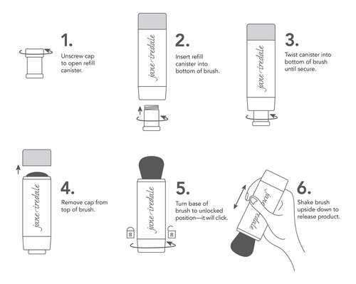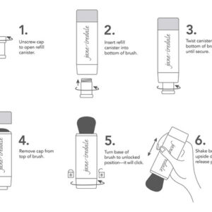 Protetor solar seco jane iredale Powder-Me SPF 30, nude, 5 g. – Protetor solar físico seco para rosto, corpo e couro cabeludo. – Proteção solar SPF 30 de amplo espectro (UVA/UVB). – Escova fluida recarregável com cabeça magnetizada para facilitar a limpeza. – Segura e eficaz para todos os tipos de pele; ideal para peles sensíveis e com tendência a acne. – Vegana, amarrada à mão, esculpida as fibras da escova imitam o cabelo natural.