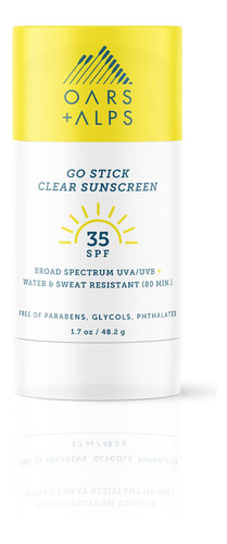 Protetor solar facial Oars + Alps Go Stick Clear SPF 35, cuidado de pele com infusão de vitamina E e antioxidantes, resistente à água e ao suor, compatível com TSA, 1,7 onças, 1 pacote — BASTÃO TRANSPARENTE SPF 35 PARA QUALQUER LUGAR: com FPS 35 UVA/UVB de amplo espectro e ingredientes extra-hidratantes, você vai querer levá-lo para qualquer lugar. Além disso, o SPF é resistente ao suor e à água por 80 minutos. – Ótimo para todos os tipos de pele: este bastão SPF desliza sobre a pele transparente, o que o torna ótimo para todos os tipos de pele. Use-o como protetor solar facial ou corporal sem se preocupar com resíduos brancos (especialmente em áreas difíceis de ver, como orelhas e pescoço). – Não derrame e viaje: este bastão ideal para viagens não se derrama na bolsa quando você o leva em qualquer lugar ou quando viaja. – INGREDIENTES HIDRATANTES: A fórmula contém óleo de jojoba e óleo de girassol para hidratar, além de musgo alpino rico em antioxidantes e vitamina E para promover a saúde da pele. – SUAVE PARA A PELE: Esta fórmula vegana e livre de crueldade não contém fragrâncias e é suave, por isso não irrita peles sensíveis ou recém-depiladas. Também é seguro para recifes e livre de oxibenzona, octinoxato, parabenos, ftalatos e sulfatos.