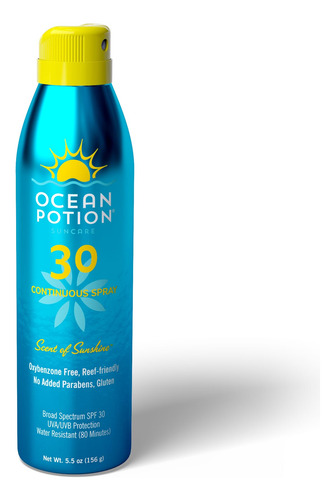 Spray contínuo Ocean Potion Clear SPF 30 de 6 onças | Proteção de amplo espectro, resistente à água e ao suor, não oleoso, sem fragrância, sem parabenos e sem glúten Visão geral do produto: O spray contínuo Ocean Potion Clear SPF 30 é um protetor solar ultraleve e de alto desempenho projetado para indivíduos ativos. Perfeito para a praia, piscina, caminhadas, surfe ou exercícios, esse protetor solar oferece proteção de amplo espectro contra os raios UVA e UVB. A fórmula não oleosa pulveriza sobre a pele transparente, tornando-a adequada para todos os tons de pele. É resistente à água e ao suor, permanece ativo mesmo durante atividades intensas e não arde nos olhos. Livre de oxibenzona, octinoxato, homosalato, parabenos e glúten, esse protetor solar é uma opção ecológica e segura para quem está consciente do que coloca na pele. Um delicioso “Scent of Sunshine” adiciona uma experiência sensorial refrescante a cada spray. Características principais: Proteção de amplo espectro: protege contra os raios UVA e UVB para ajudar a evitar queimaduras solares e danos à pele. Fórmula não oleosa e transparente: pulveriza sobre a pele transparente e é rapidamente absorvida, tornando-a ideal para todos os tons de pele sem deixar resíduos oleosos. Resistente à água e ao suor: permanece ativo durante atividades de alta intensidade, oferecendo proteção confiável na água ou durante a transpiração. Seguro e ecológico: livre de oxibenzona, octinoxato, homosalato, parabenos e glúten, garantindo um protetor solar seguro e ecologicamente correto. Refrescante “Scent of Sunshine”: desfrute de uma fragrância leve e revigorante com cada spray, aumentando a experiência sensorial enquanto protege sua pele. Por que escolher a Ocean Potion? O spray contínuo Ocean Potion Clear SPF 30 combina proteção solar de alto desempenho com uma fórmula limpa e clara que funciona para todos os tons de pele. Projetado para estilos de vida ativos, oferece proteção duradoura e resistente à água, sem produtos químicos agressivos. Aproveite o fresco “Scent of Sunshine” enquanto se protege do sol, tudo com a tranquilidade de estar usando um protetor solar seguro e ecológico. Perfeito para: dias na praia e na piscina Caminhadas e aventuras ao ar livre Surfe e esportes aquáticos Corrida e exercícios Proteção solar diária Instruções de uso: Agite bem antes de usar. Segure a lata a 4-6 polegadas da pele e pulverize uniformemente. Aplique generosamente e reaplique a cada 2 horas ou depois de nadar, suar ou secar com uma toalha. Tamanho: 5,5 onças Ingredientes: sem oxibenzona, sem octinoxato, sem homosalato, sem parabenos, sem glúten e formulados com ingredientes seguros e amigáveis para a pele. – Sem adição de parabenos, octinoxato, propilenoglicol, palmitato de retinil, paba, glúten, BHT, BPA – Sem testes em animais – Enriquecido com Vitamina E e Folha de Aloe