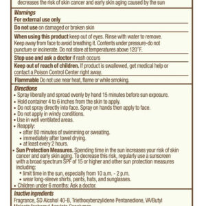 O spray protetor solar contínuo Panama Jack Sport SPF 30 combina delicadamente antioxidantes com óleos hidratantes e uma fragrância tropical em uma fórmula UVA/UVB de amplo espectro, livre de oxibenzona e octinoxato. Projetado para amantes do esporte e do sol: ajudando a alcançar a quantidade desejada de proteção solar, este spray bronzeador multifuncional é livre de crueldade, sem testes em animais e NÃO contém: glúten, parabenos, PABA, oxibenzona, octinoxato, propileno, glicol, retinil, palmitato, BHT ou corantes. PROTETOR SOLAR DE AMPLO ESPECTRO: com SPF 30 (fator de proteção solar), esta loção protetora solar UVA-UVB da Panama Jack é ideal para uso em peles muito claras/extremamente sensíveis que se bronzeiam lentamente e queimam facilmente. Frasco fácil de segurar, fácil de segurar, com tampa dispensadora de spray giratória, aberta e fechada. Use com frequência e reaplique após secar com uma toalha, nadar por muito tempo ou transpirar excessivamente. MEDIDAS DE PROTEÇÃO SOLAR: Passar tempo ao sol aumenta o risco de câncer e envelhecimento precoce da pele. Para diminuir esse risco, use regularmente um protetor solar com um SPF de amplo espectro de 30 ou superior e outras medidas de proteção solar, incluindo o uso de chapéus e óculos escuros. – MEDIDAS DE PROTEÇÃO SOLAR: Passar tempo ao sol aumenta o risco de câncer e envelhecimento precoce da pele. Para diminuir esse risco, use regularmente um protetor solar com um SPF de amplo espectro de 15 ou superior e outras medidas de proteção solar, incluindo o uso de chapéus e óculos de sol
