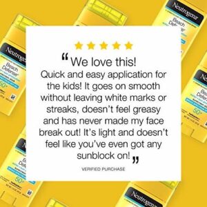 Product Description Help give your skin superior protection from harsh outdoor elements with Neutrogena Beach Defense Face & Body Sunscreen Stick with Broad Spectrum SPF 50+. Ideal for active families, this beach-strength sunscreen is clinically proven to help defend against the signs of sun and water damage and may decrease the risk of skin cancer caused by the sun when used as directed. Featuring an oxybenzone-free formula and with Helioplex Technology, this sunscreen stick offers superior broad-spectrum protection from skin-aging UVA rays and skin-burning UVB rays. Great for on-the-go, the unique sunscreen stick glides on easily for convenient, hands free, no-mess application for your next outdoor activity. This sunscreen stick is specially formulated to be lightweight, PABA-free, and water-resistant for up to 80 minutes and comes from the #1 dermatologist-recommended suncare brand Brand Story By Neutrogena