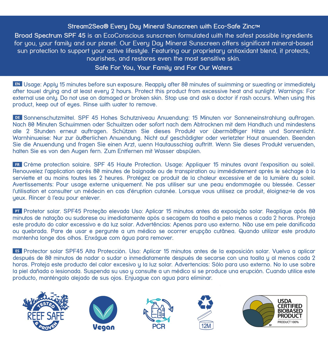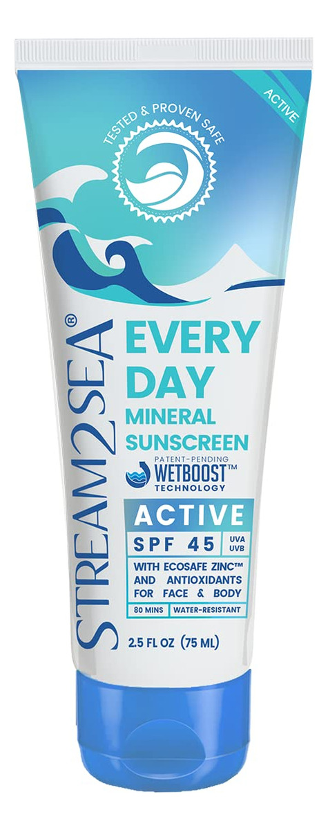 Protetor solar mineral ativo diário SPF 45 | Protetor solar biodegradável de 2,5 oz e seguro para recifes para rosto e corpo | Proteção mineral não oleosa, leve e pura contra UVA e UVB da Stream2Sea – Protetor solar mineral de alto desempenho; os ingredientes orgânicos do protetor solar corporal e facial atuam como um escudo físico que protege a superfície da pele contra os raios solares UVA e UVB. Isso significa que o protetor solar fica literalmente na superfície da pele – o que confere mais segurança ao corpo, ao contrário da maioria dos protetores solares químicos, onde ingredientes agressivos são absorvidos em nossos poros – Resistente à água; a maioria dos protetores solares perde de 30 a 60% de sua proteção solar após 80 minutos na água, mas não nosso protetor solar para cuidados com a pele. Nossos protetores solares minerais para uso diário são leves e transparentes e essas fórmulas são tão resistentes à água que, na verdade, funcionam 45% melhor depois de nadar. Além disso, é transparente e leve, então você pode usá-lo todos os dias! – Perfeito para o uso diário; embora nosso protetor solar mineral diário seja transparente e leve, aplicar um protetor solar mineral é diferente do que você está acostumado. Aplique em seções e esfregue até misturar. Reaplique após 80 minutos de natação, transpiração ou imediatamente após a secagem da toalha. Use todos os dias ou conforme necessário para todas as suas aventuras ao ar livre! – Fórmula hidratante; esta fórmula não gordurosa e não comedogênica é enriquecida com nossa mistura antioxidante exclusiva e açafrão para proteger, nutrir e restaurar diariamente até mesmo a pele mais sensível. Nossa fórmula natural e ecológica não contém parabenos, sulfatos, glúten, oxibenzona ou octinoxato. Saudável para os olhos, a pele e os oceanos! – Nossa fórmula é segura para recifes; muitos protetores solares à base de produtos químicos são tóxicos para recifes de coral e peixes. Nosso produto é um protetor solar de base mineral, natural e ecológico. Isso foi testado e provou ser seguro para humanos, vida marinha de água doce e salgada. Até mesmo nossos tubos são ecologicamente corretos – todos os contêineres Stream 2 Sea são feitos de resina de cana-de-açúcar. Mares felizes e pele feliz, de fato!