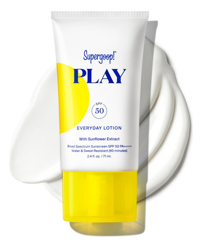 Super goop! Loção diária PLAY SPF 50 (2,4 fl oz) — Protetor solar corporal e facial de amplo espectro para pele sensível — Ótima para dias ativos — de rápida absorção, resistente à água e ao suor — FPS superpotente — Esse protetor solar leve e hidratante de amplo espectro absorve os raios UVA (envelhecimento) e UVB (queimação), de forma que sua pele não o faça. – Sem manchas brancas – Nossa loção de proteção solar SPF 50 tem um aroma leve e refrescante e é facilmente absorvido sem ficar pegajoso ou deixar um tom branco. – PERFEITO PARA DIAS ATIVOS – PLAY Everyday SPF 50 apresenta uma fórmula de alto desempenho que é resistente à água e ao suor para até 80 minutos. – NUTRA E PROTEJA A PELE – Nosso protetor solar PLAY sem oxibenzona e octinoxato inclui ingredientes limpos e ricos em antioxidantes, como extratos de folhas de girassol e alecrim, que nutrem e protegem sua pele. – COMO APLICAR – Aplique generosamente e uniformemente 15 minutos antes da exposição ao sol e reaplique pelo menos a cada duas horas ou após 80 minutos de natação.