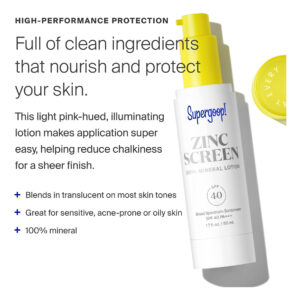 Super goop! Protetor de zinco — 1,7 fl oz, pacote com 2 — Loção facial 100% mineral SPF 40 PA+++ e protetor solar de amplo espectro — Fórmula leve e misturável com tonalidade rosa — PROTETOR SOLAR 100% MINERAL — O protetor de zinco é uma loção facial leve, sem nanoóxido de zinco, que oferece proteção SPF 40 de amplo espectro contra os raios UV nocivos do sol. – BONITO EM ZINCO – O óxido de zinco é um pó branco, tornando impossível continuar claro. Para reduzir o tom branco que os protetores solares tradicionais com zinco conferem, formulamos o protetor de zinco com um tom rosa que se mistura com translúcido na maioria dos tons de pele. – INGREDIENTES PROTETORES – Cereja de inverno, extrato de coco e extrato de mirtilo são ingredientes nutritivos que ajudam a proteger sua pele dos danos UV e ajudam a filtrar a luz azul e outros agressores. – PARA TODOS OS TIPOS DE PELE – O protetor de zinco funciona perfeitamente em pele sensível, propensa a acne ou oleosa pele. Nossa tecnologia Mineral Blend torna a aplicação muito fácil, ajudando a reduzir o calcário para um acabamento puro e hidratante que nunca parece pesado ou oleoso. – COMO APLICAR – Aplique generosamente e uniformemente como última etapa de sua rotina de cuidados com a pele e 15 minutos antes da exposição ao sol. O protetor de zinco funciona bem até mesmo sob a maquiagem, deixando a pele macia e macia.