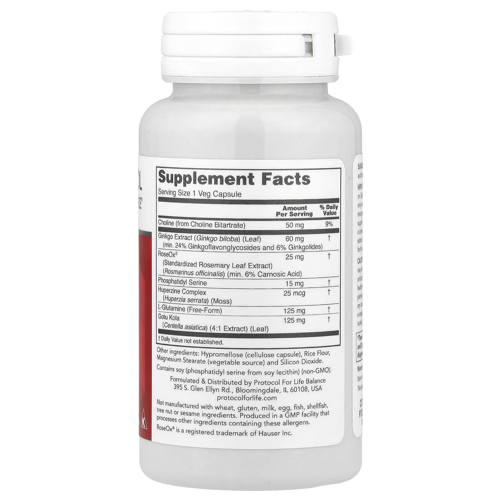 Contém soja (fosfatidilserina de lecitina de soja) (não OGM).