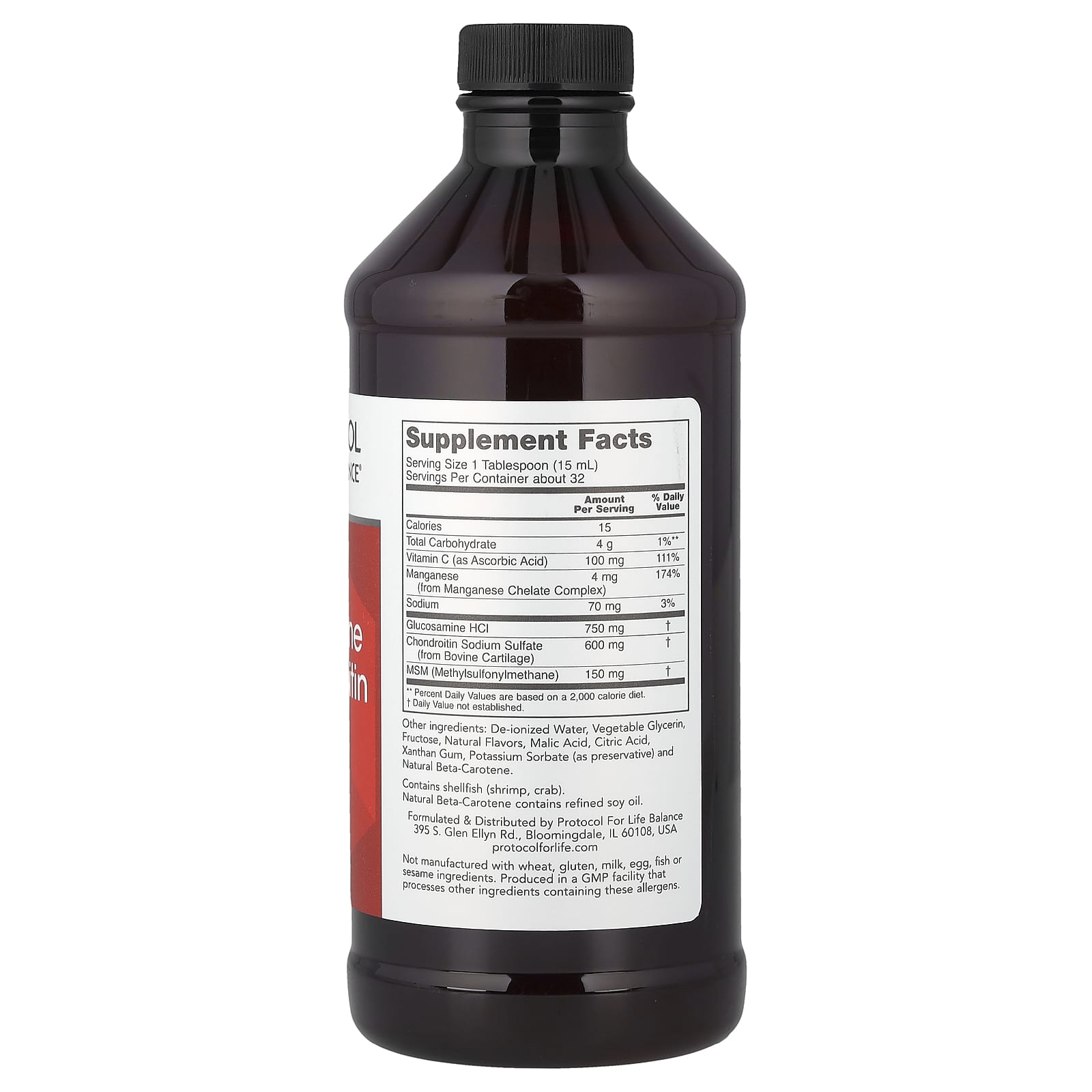 Protocol for Life Balance Glicosamina Líquida e Condroitina com MSM Cítricos 473 ml (16 fl oz) – Protocol for Life Balance Suplementos Ossos, Articulações e Cartilagem Fórmulas de Glucosamina.