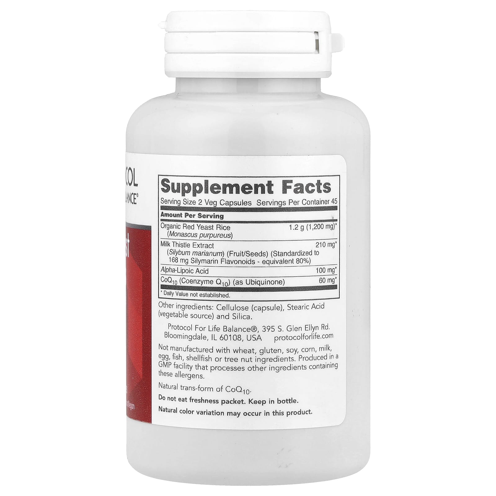 Protocol for Life Balance Levedura de Arroz Vermelho Plus com CoQ10 Cardo-Mariano e Ácido Tióctico 90 Cápsulas Vegetais – Protocol for Life Balance Suplementos Ervas Arroz Fermentado Vermelho.