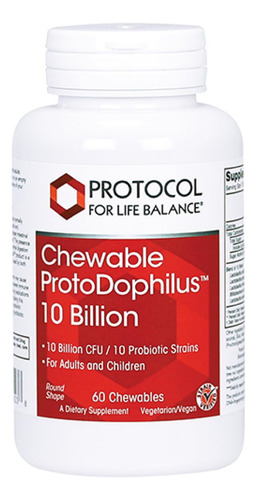 Protocol for Life Balance Chewable Protophilus – Probiótico de 10 bilhões de CFU – Comprimido mastigável para adultos e crianças – Para saúde digestiva, desintoxicação e limpeza* – Vegano e halal – 60 suplementos