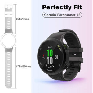 Tamanho único para ajuste ajustável — Orifícios na pulseira Forerunner 45 para ajustar o comprimento adequado de 4,92"-7,48" (125 mm a 190 mm). Vem com uma chave de fenda e 4 parafusos. A pulseira de relógio com acabamento superficial de alta tecnologia se encaixa no seu dispositivo e se sente confortável em seu pulso. Pulseira flexível com acabamento suave para uso confortável no dia a dia.