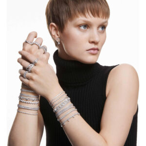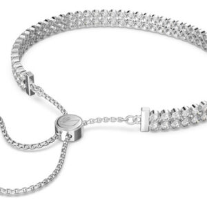 Pulseira feminina de tênis Swarovski Matrix, com cristais Swarovski transparentes em acabamento prateado em ródio e fecho em bolo – Comprimento: 9 3/8 polegadas – Incrivelmente atemporal: a pulseira de tênis Swarovski Matrix para mulheres apresenta metal com acabamento em ródio e cristais Swarovski cintilantes – projetada para quem quer usar algo radiante – Vividly Sparkling: duas fileiras de cristais brancos brilhantes criadas e cortadas de acordo com o padrão Swarovski com uma corrente e um fecho detalhados, uma pulseira elegante e moderna para qualquer roupa ou ocasião — Projetada para durar: joias Swarovski apresenta o brilho extraordinário dos cristais Swarovski e dos metais duráveis – para garantir a vida útil de suas joias, evite o contato com água, loções ou perfumes – Destaque-se da multidão: um presente encantador para você ou um ente querido, esta pulseira atraente foi criada para complementar qualquer roupa, adicionando um toque luxuoso e estiloso, em qualquer ocasião – Itens entregues: 1 pulseira da coleção Swarovski Matrix Tennis para mulheres, 9 Corrente de 8 polegadas de comprimento em metal com acabamento em ródio, com caixa de pulseira Swarovski, parte da coleção de tênis Swarovski Matrix