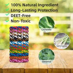 pulseiras repelentes de mosquitos – naturais e sem dieta – Nossas pulseiras são feitas com óleo de geraniol, óleo de capim-limão e óleo de citronela. Óleos essenciais podem repelir mosquitos com eficácia. Livre de DEET e segura para crianças e bebês – Uso interno e externo – Nossa pulseira repelente de insetos natural é ótima para uso interno e externo. Adequadas para muitas ocasiões, como acampar, correr, caminhar, viajar, pescar, jardinar — Design embalado individualmente — Nossas pulseiras repelentes de mosquitos são embaladas individualmente com tiras que podem ser fechadas novamente, que são convenientes para armazenamento e reutilização. Econômica e ecológica — Proteção duradoura — Cada pulseira oferece longas horas de proteção efetiva. As pulseiras são ajustáveis, modernas e confortáveis o suficiente para serem usadas tanto por crianças quanto por adultos. Você também pode simplesmente colocá-los em qualquer lugar, como mochilas infantis, carrinhos de bebê e muito mais – Qualidade e serviço premium – Se você tiver algum problema com nossos produtos ou dúvidas, sinta-se à vontade para entrar em contato conosco e responderemos a tempo. Estamos à disposição para ajudá-lo o tempo todo