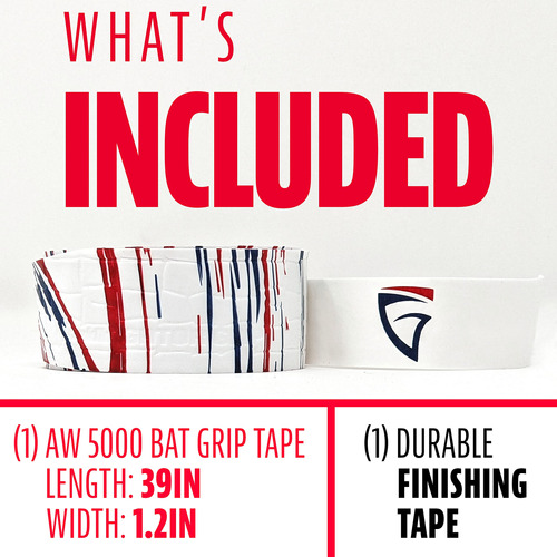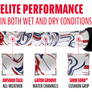 Franklin Sports Gator Grip – AW5000 Gator Grip – Baseball Bat Grip Tape – White/Navy/Red, 1.2 mm – ALL WEATHER: 1.2MM premium all weather grip – AW5000: The AW5000 Tack provides high performance in both wet and dry conditions – GATOR GROOVE: Water channels help reduce grip slip on the bat while playing in wet conditions – SHOK SORB: Cushioned grip provides the added padding you need to ensure no sting. – EASY TO APPLY: Step 1 – Peel back tape, Step 2 – Wrap handle, overlapping tape by 0.25in, Step 3 – Apply finishing tape