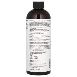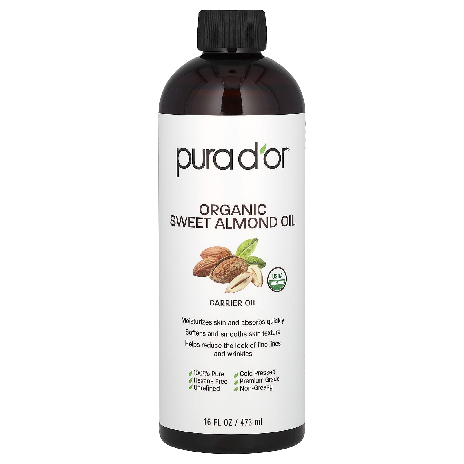 Pura Dor Óleo de Amêndoa Doce Orgânica 473 ml (16 fl oz) – Pura D’or Banho e Cuidados Pessoais Cuidados com o Corpo Óleos corporais e de massagem Óleo de Amêndoas Doces.