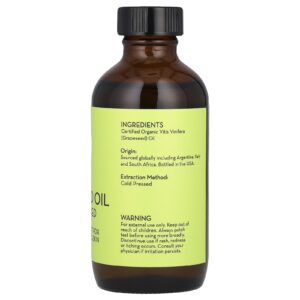 Pure Body Naturals Óleo da Semente de Uva Orgânica 118 ml (4 fl oz) – Pure Body Naturals Cuidados Pessoais Cuidados com o Corpo Óleos corporais e de massagem Beleza Beleza por Ingrediente Cuidado para a pele com Vitamina E.