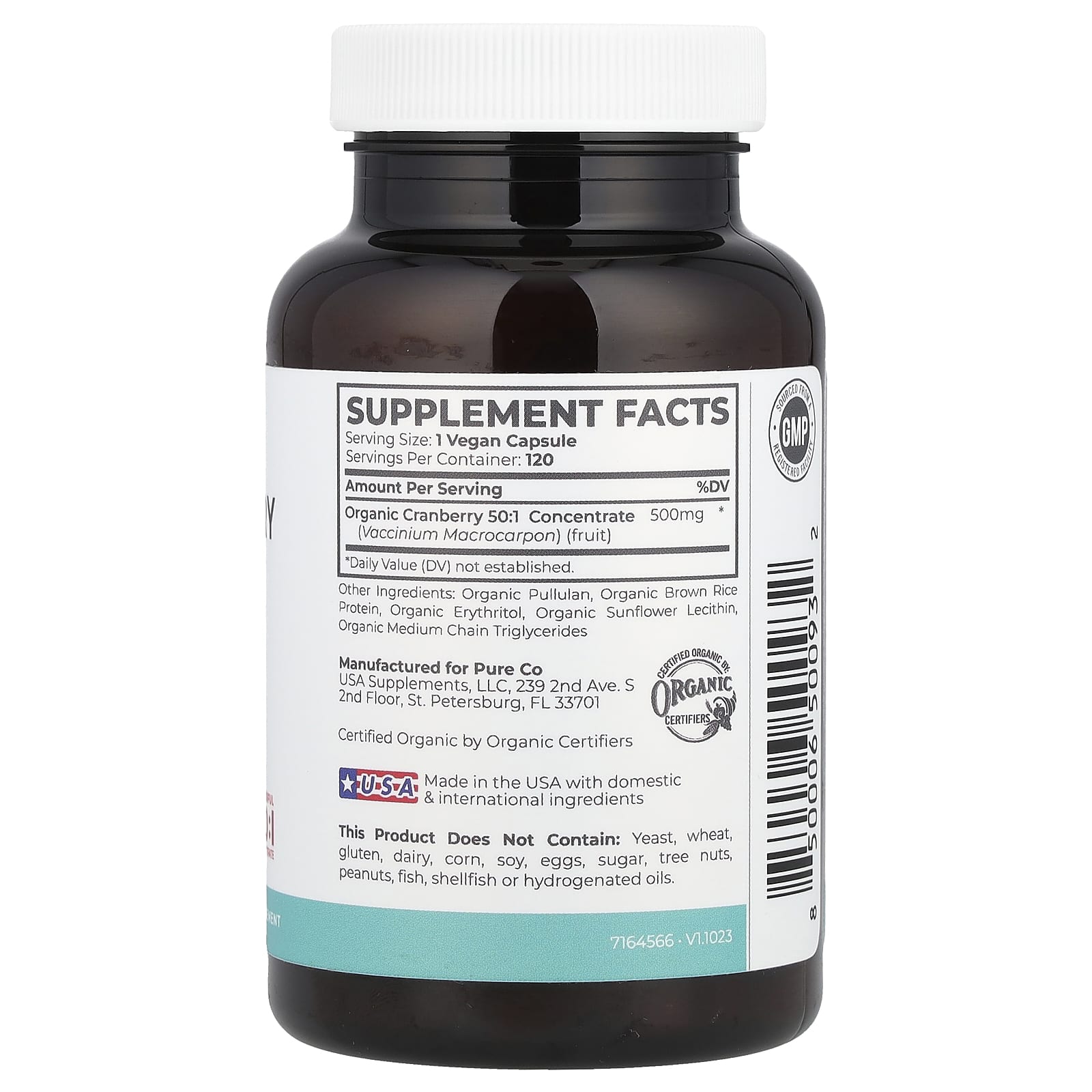 Pure Co. Concentrado de Cranberry Orgânico 500 mg 120 Cápsulas Veganas – Pure Co. Suplementos Ervas Suplementos de Cranberry.