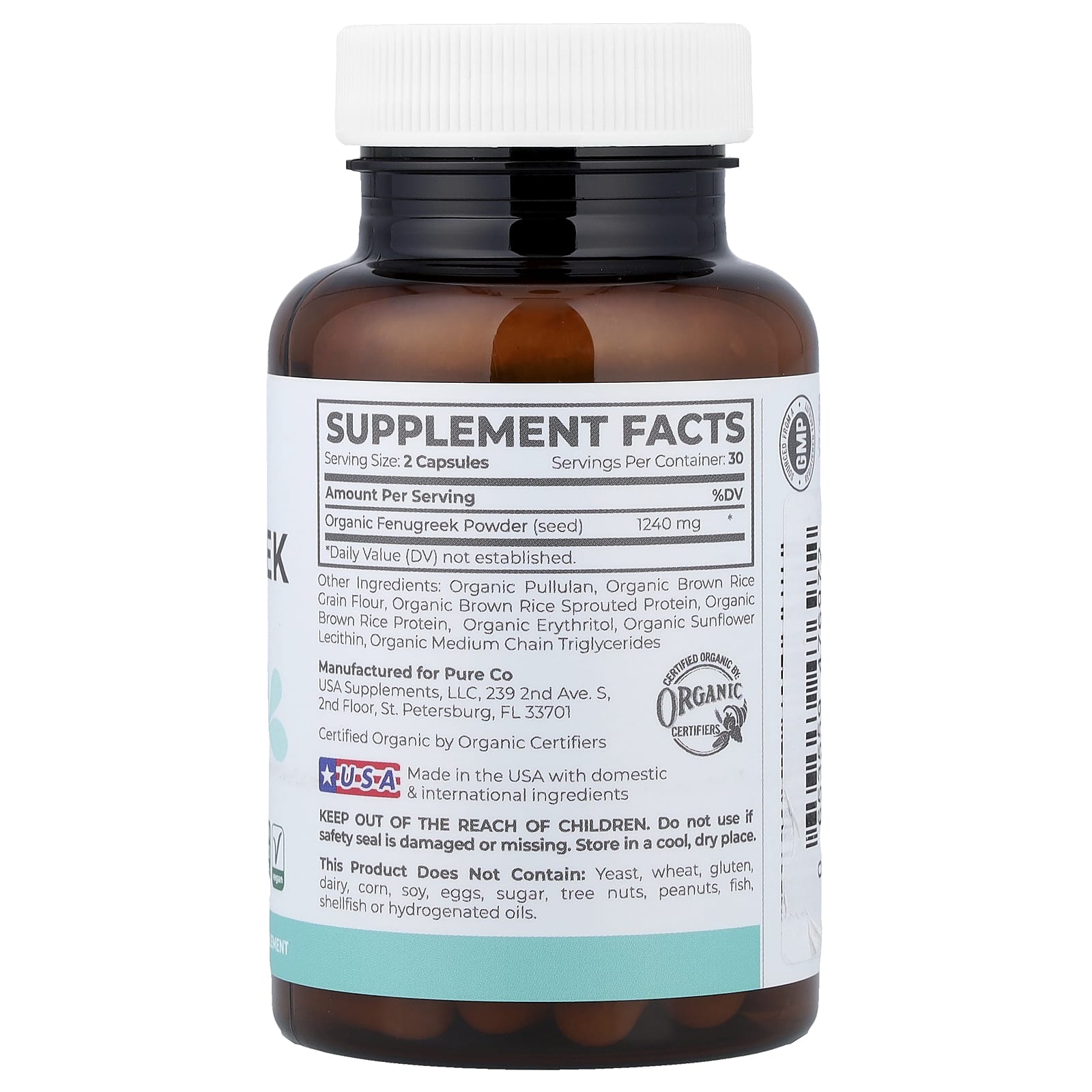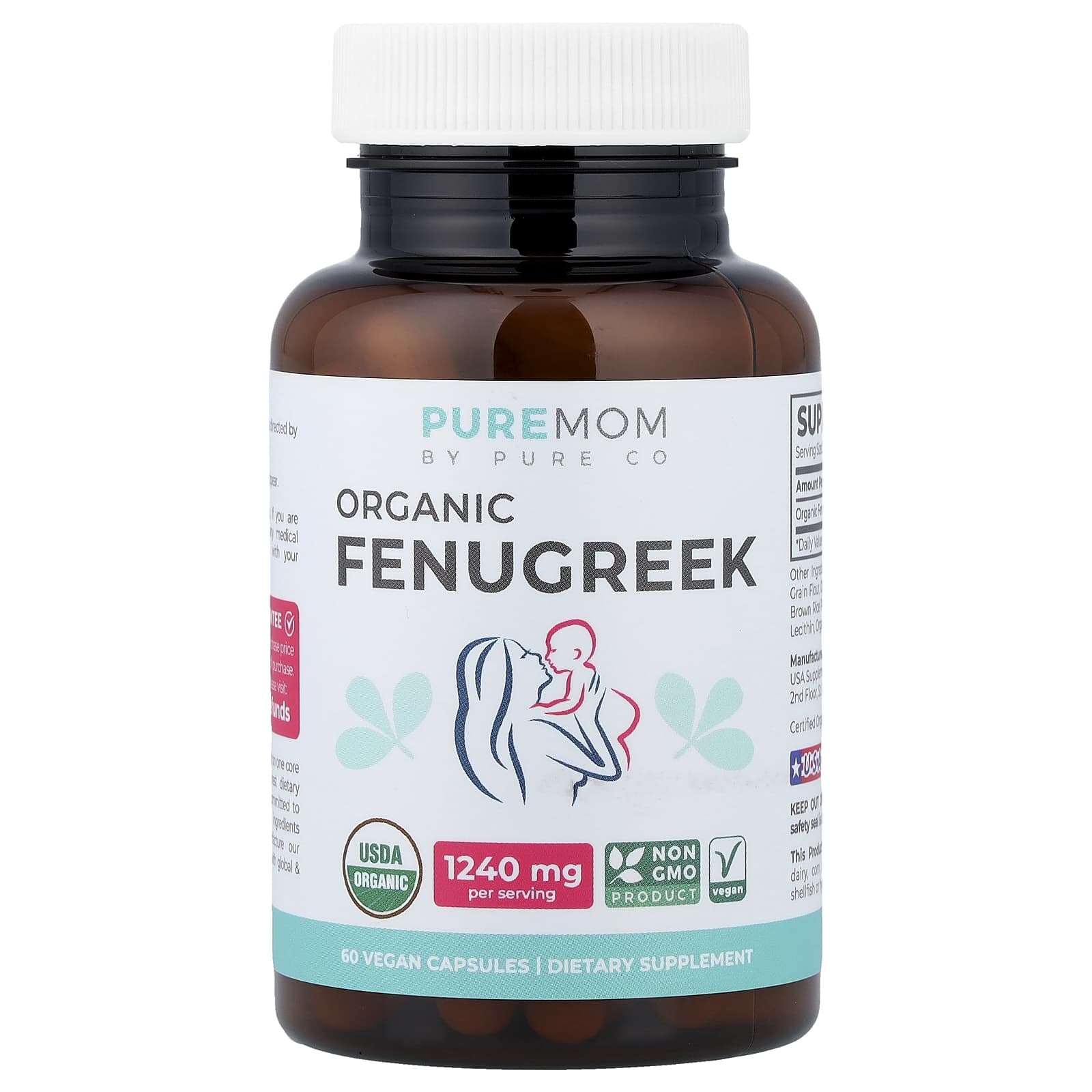 Pure Co. Pure Mom Fenacho Orgânico 60 Cápsulas Veganas (620 mg por Cápsula) – Pure Co. Suplementos Ervas Suplementos de Feno-Grego.