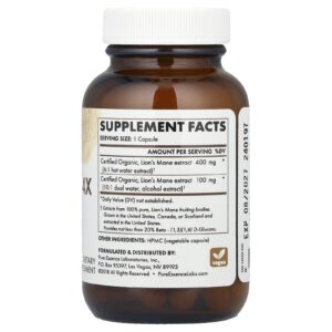 MyPure ™ Lion’s Juba 4X combina extratos 1: 1 e 8: 1 de corpos de frutificação orgânicos certificados de Juba de Leão para fornecer a nutrição de Juba de Leão mais potente que você encontrará. Cada lote é testado em laboratório quanto à limpeza, pureza e potência. Juba de Leão auxilia: