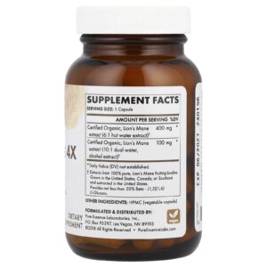 Pure Essence MyPure™ Juba-de-leão 4X Ultrapotência 60 Cápsulas Vegetais – Pure Essence Suplementos Cogumelos Juba de Leão.
