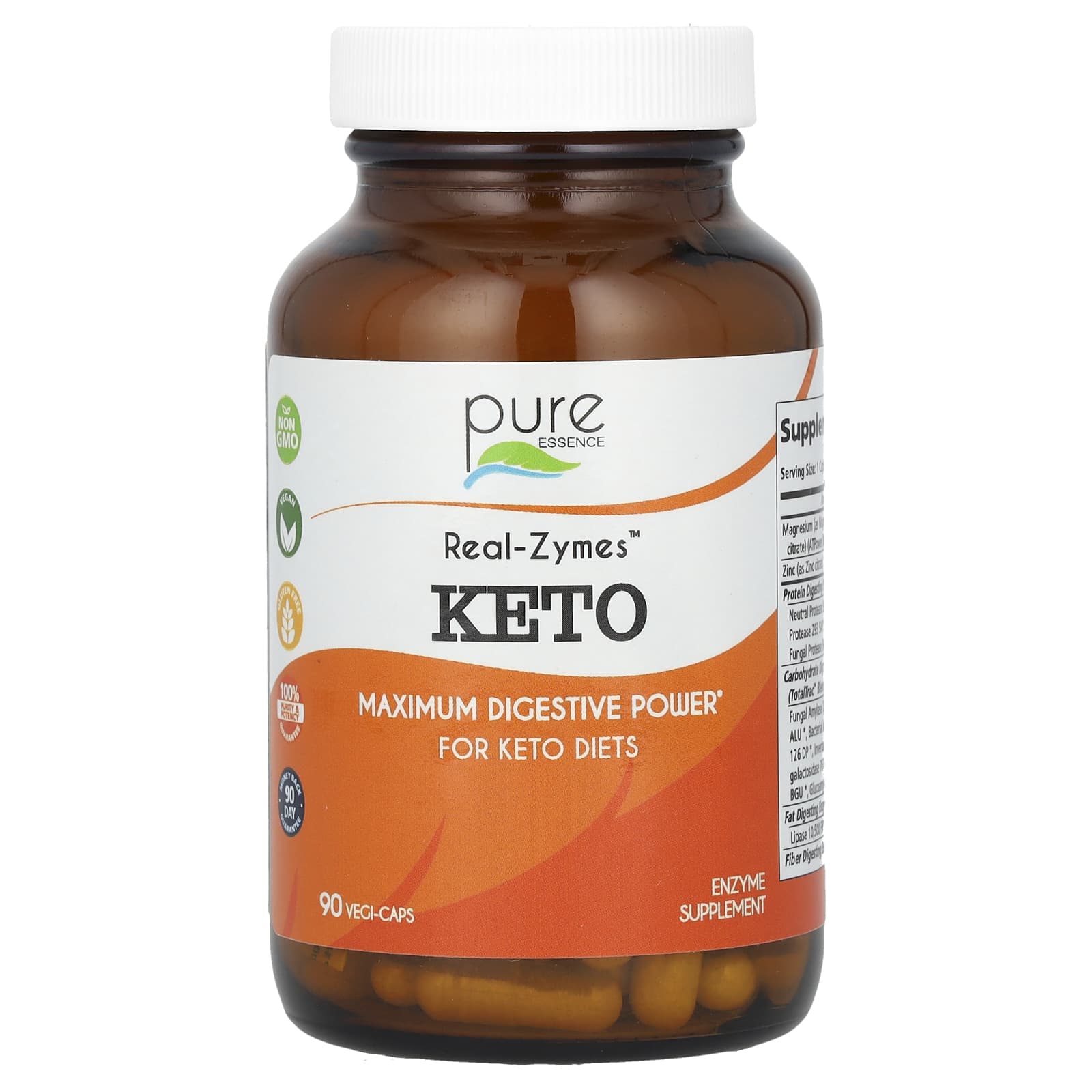 Pure Essence Real-Zymes Keto 90 Cápsulas Vegetais – Pure Essence Suplementos Saúde Intestinal Enzimas Digestivas.