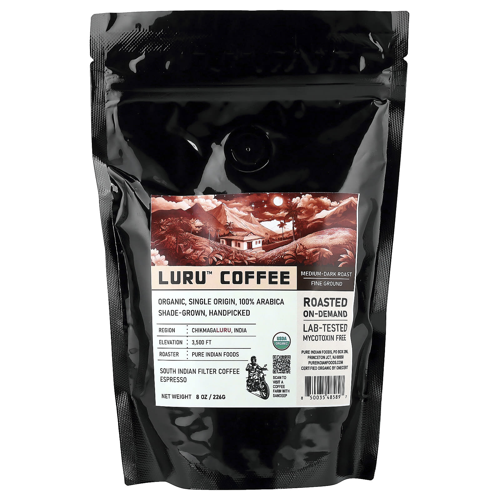 Pure Indian Foods Café Luru™ Moído Fino Torra Média/Ecura 226 g (8 oz) – Pure Indian Foods Alimentos Chás e bebidas Coffee.