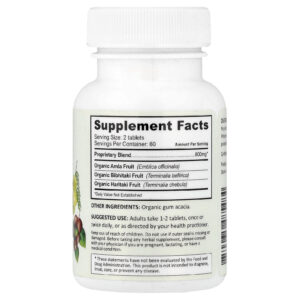 Pure Indian Foods Comprimidos de Triphala Orgânica 120 Comprimidos – Pure Indian Foods Suplementos Ervas Triphala.