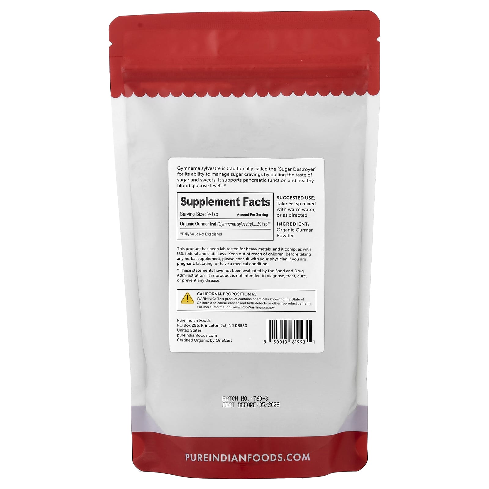 Pure Indian Foods Gymnema Sylvestre Orgânico 227 g (8 oz) – Pure Indian Foods Suplementos Ervas Gymnema.