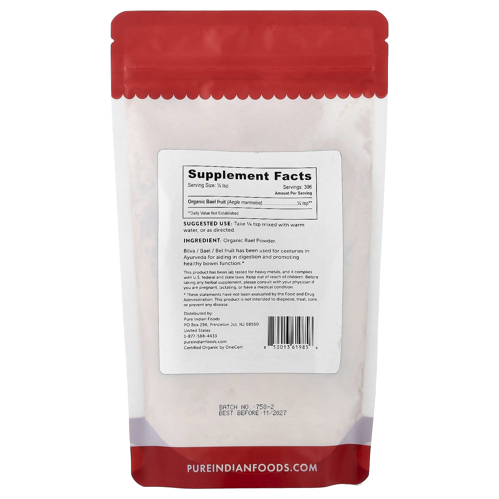 Pure Indian Foods Pó de Bilva Orgânico 227 g (8 oz) – Pure Indian Foods Suplementos Saúde Intestinal.