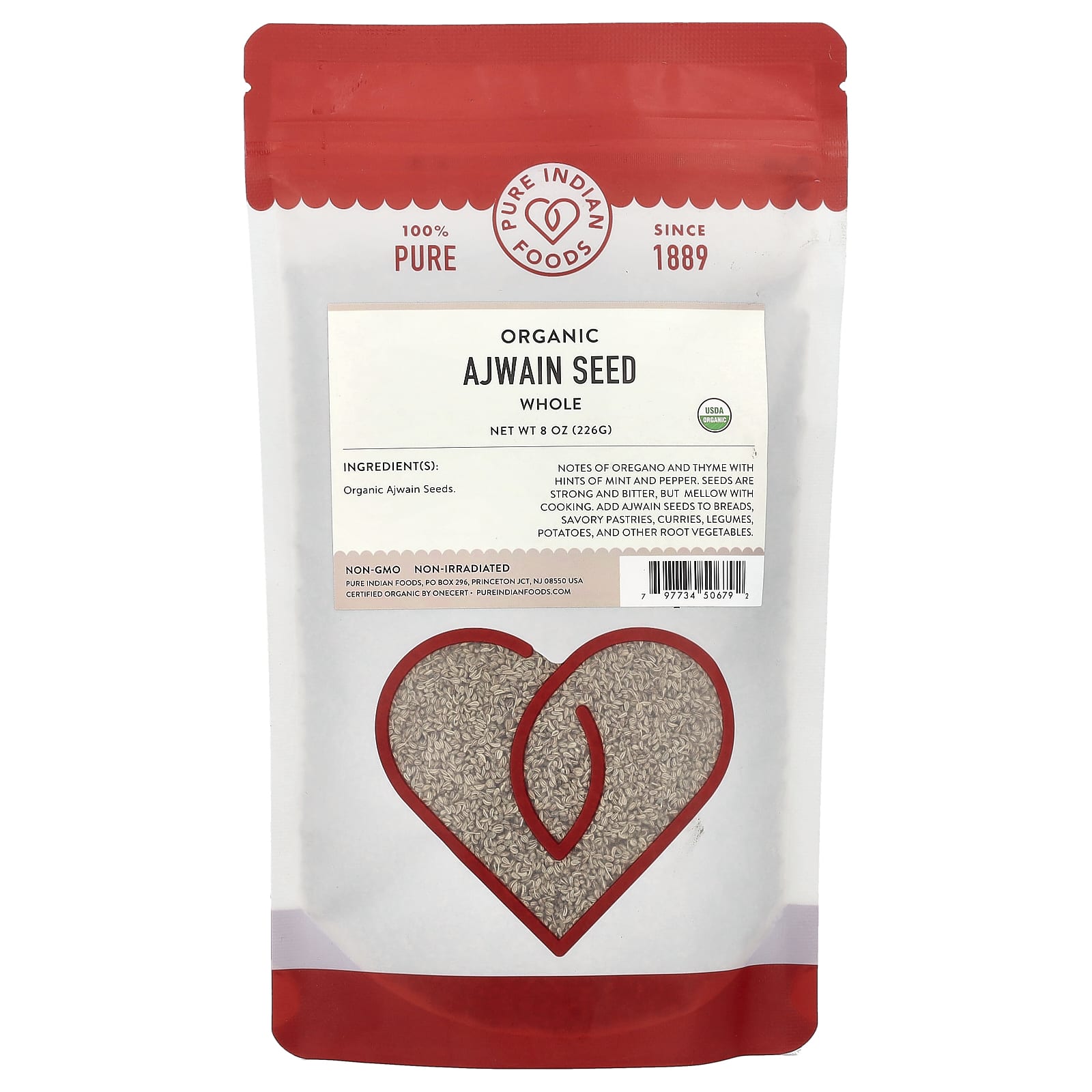 Pure Indian Foods Semente de Ajwain Orgânico Inteira 226 g (8 oz) – Pure Indian Foods Alimentos Petiscos e lanches Castanhas e sementes.