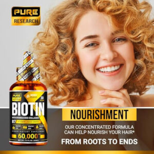 Família do Complexo B – A biotina é uma coenzima e uma das várias vitaminas B que apoiam funções corporais saudáveis, como o metabolismo. Nutra sua pele e cabelo de dentro para fora com Pure Research Biotin Liquid Collagen