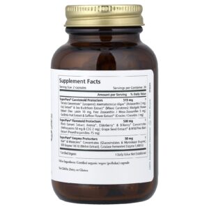 | Protetores de Enzimas SuperPure® Concentrados de Couve* e Agrião* (Glucosinolatos e Enzima Mirosinase); Enzima SOD 140 UI (Extrato de Melão), Enzima Fermentada por Catalase 1.400 UI |