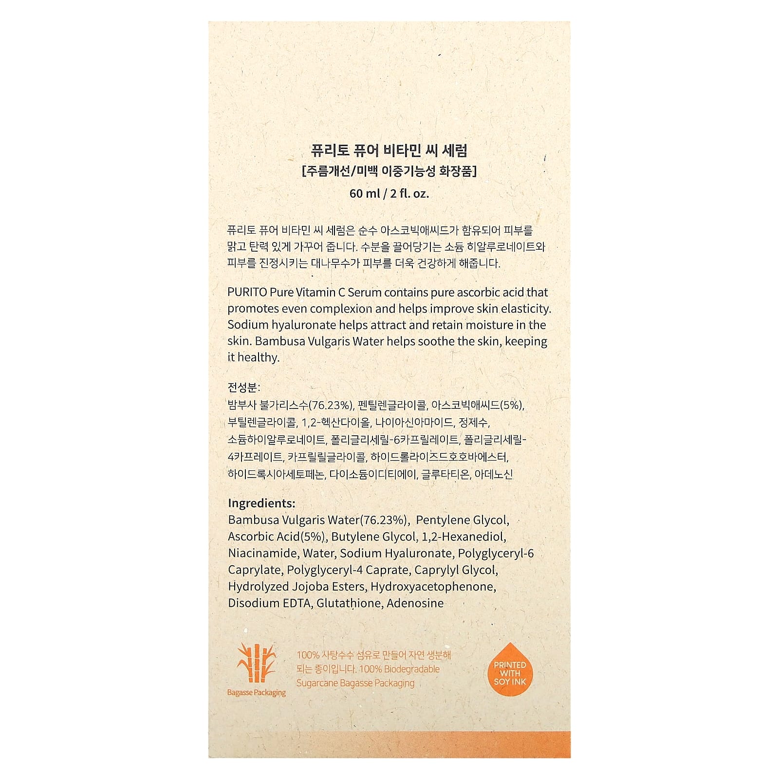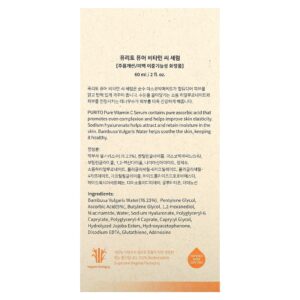 O Sérum de Vitamina C Puro da Purito contém ácido ascórbico puro, que promove uma tez uniforme e ajuda a melhorar a elasticidade da pele. O hialuronato de sódio ajuda a atrair e reter a hidratação da pele. A Água de Bambusa Vulgaris ajuda a acalmar a pele, mantendo-a saudável.