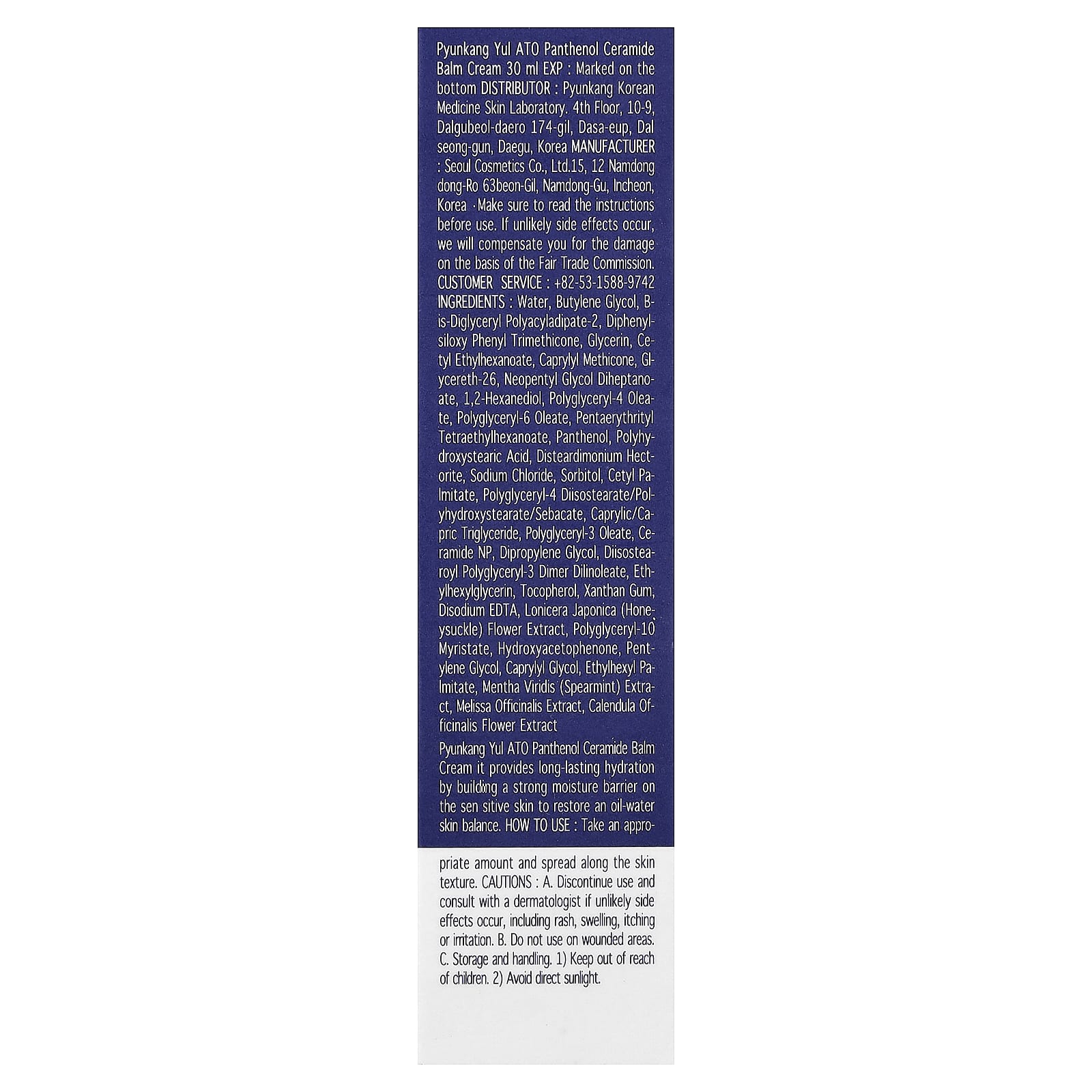 Creme Bálsamo de Ceramida Pyunkang Yul ATO Pantenol Ele fornece hidratação de longa duração, construindo uma forte barreira de hidratação na pele sensível para restaurar o equilíbrio óleo e água da pele.
