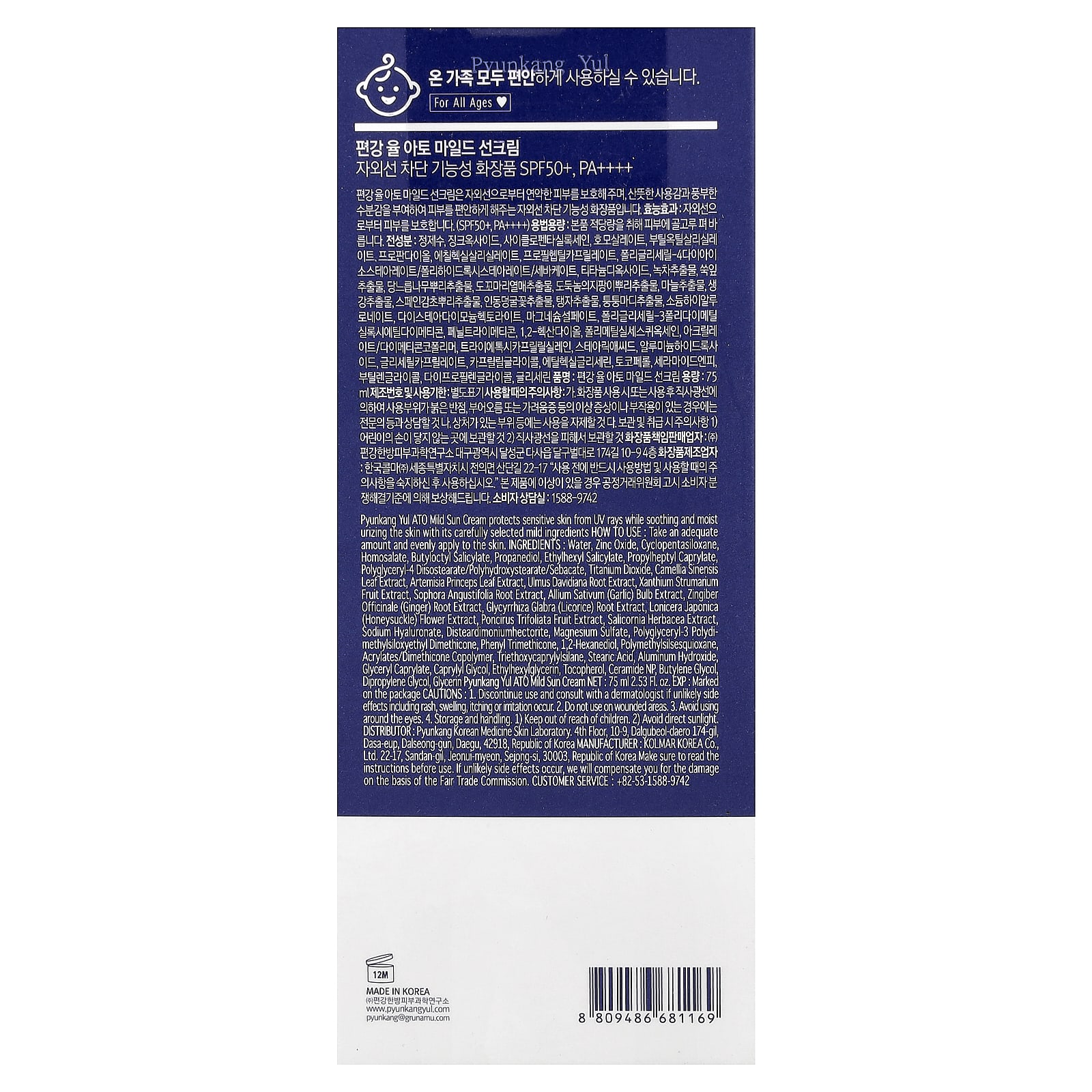Pyunkang Yul Creme Solar Suave ATO FPS 50+ PA++++ 75 ml (253 fl oz)