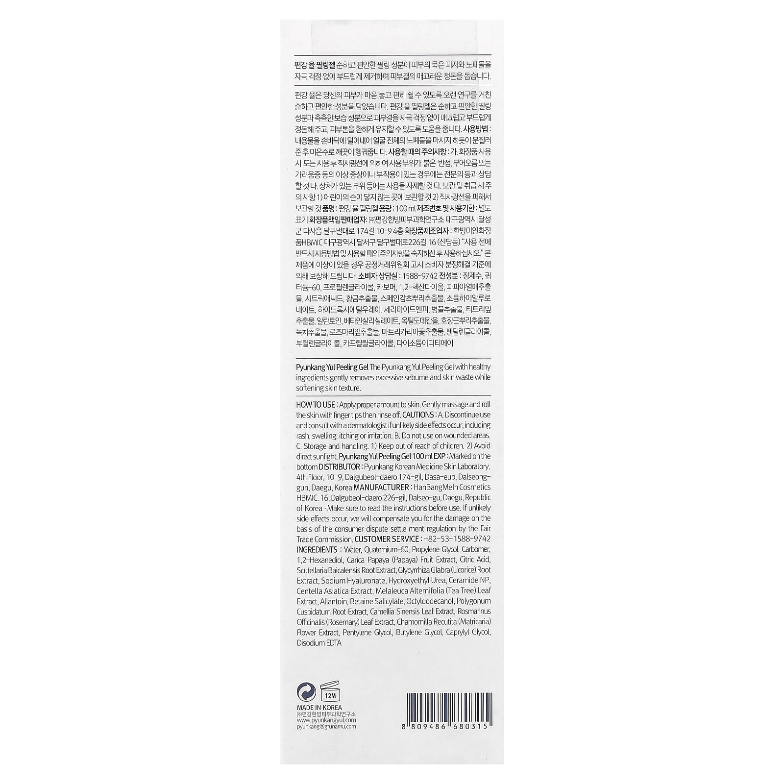 Pyunkang Yul Peeling Gel Peeling de gel suave que suaviza a textura da pele, removendo o excesso de sebo ou resíduos da pele.