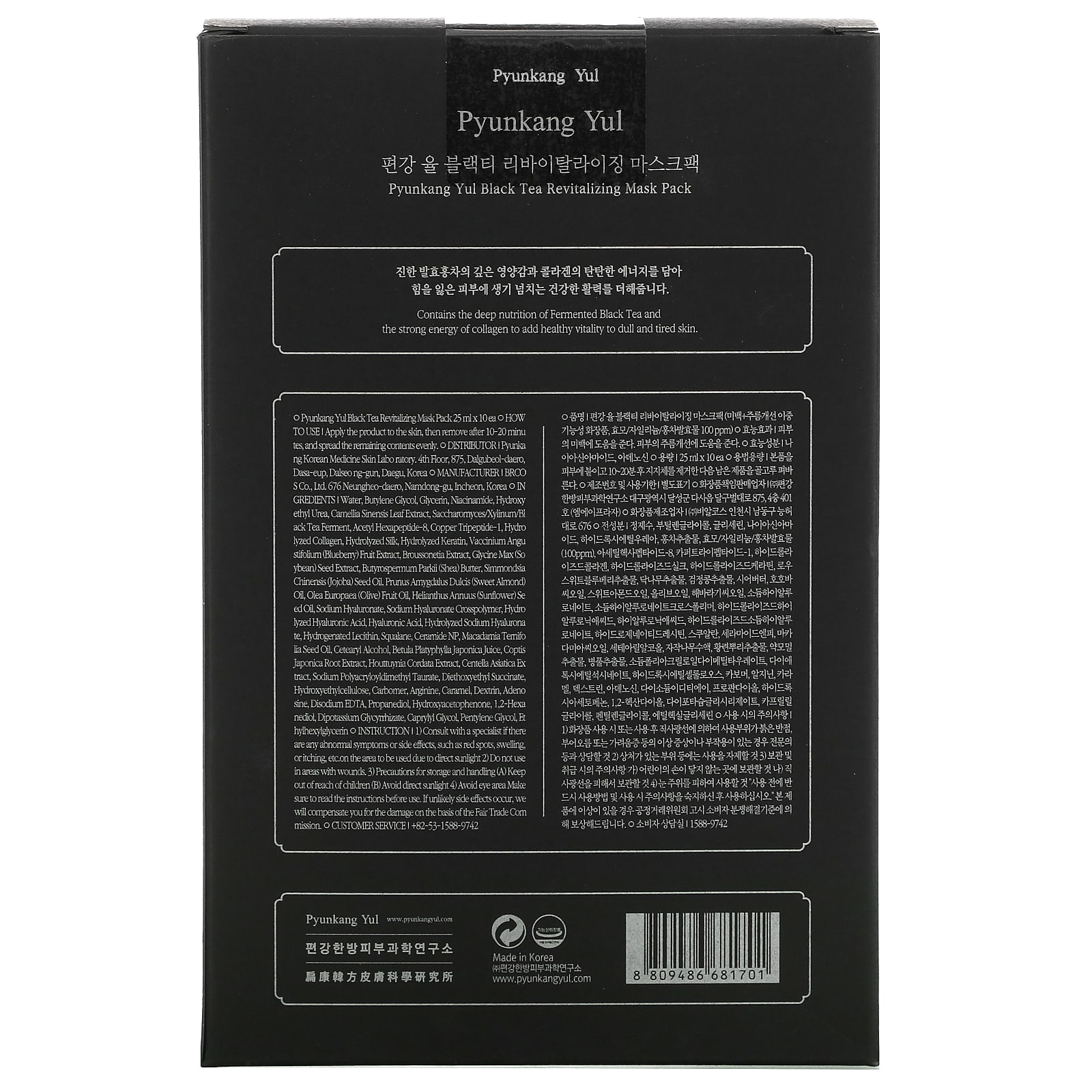 Pyunkang Yul Pacote de Máscara de Beleza Revitalizante de Chá Preto 10 Máscaras 25 ml (085 fl oz) – Pyunkang Yul Beleza Máscaras Faciais de Beleza Máscaras Faciais Máscaras em folha K-Beauty.