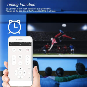 [Temporizador e tudo em sua mão] Configure temporizadores para ligar / desligar os aparelhos em um horário específico. Você pode definir o tempo de inicialização da TV / ar condicionado / DVD com antecedência. Transforme todos os controladores remotos IR em um único APP, nunca se meta em confusão.
