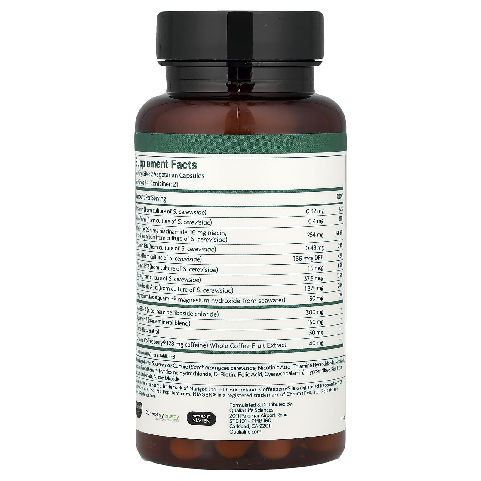 Qualia NAD+® 42 Capsules – Qualia Suplementos Vitaminas Vitamina B Vitamina B3 (Niacina) NAD+ (Nicotinamida Adenina Dinucleotídeo).