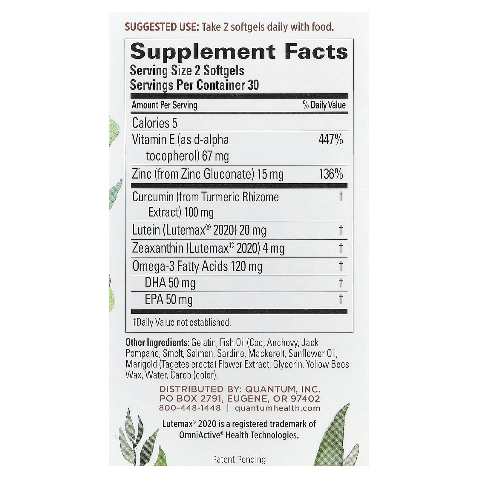 Quantum Health Digital Blue® Saúde Ocular 60 Cápsulas Softgel – Quantum Health Suplementos Antioxidantes Luteína Luteína e Zeaxantina Olhos, Ouvidos e Nariz Suplementos para os Olhos.