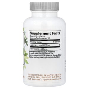Quantum Health Lisina 500 mg 100 Comprimidos – Quantum Health Suplementos Aminoácidos Lisina.