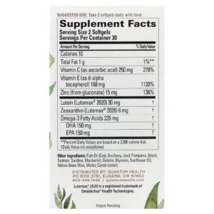 Quantum Health Macula 30+® Saúde Ocular 60 Cápsulas Softgel – Quantum Health Suplementos Antioxidantes Luteína Luteína e Zeaxantina Olhos, Ouvidos e Nariz Suplementos para os Olhos.