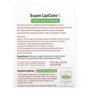 Quantum Health Super LipCare + Emblemas Invisíveis para Feridas Resfriadas 12 Curativos – Quantum Health Cuidados Pessoais Lábios Bálsamo Labial Tratamento para Herpes Labial.