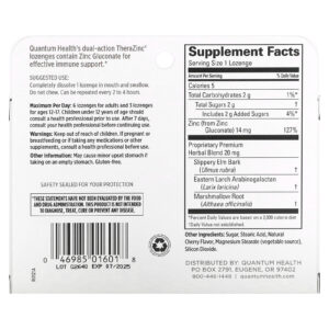 As pastilhas de dupla ação TheraZinc® da Quantum Health contêm gluconato de zinco para um suporte imunológico eficaz.