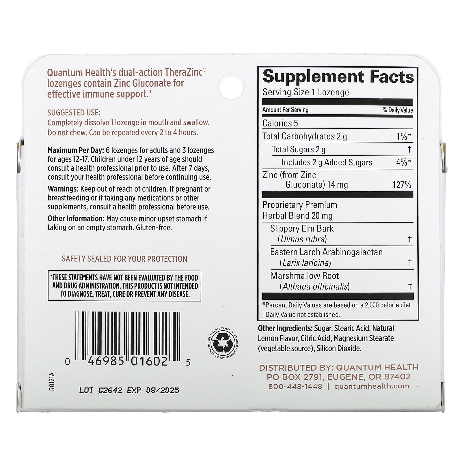 As pastilhas de dupla ação TheraZinc® da Quantum Health contêm gluconato de zinco para um suporte imunológico eficaz.