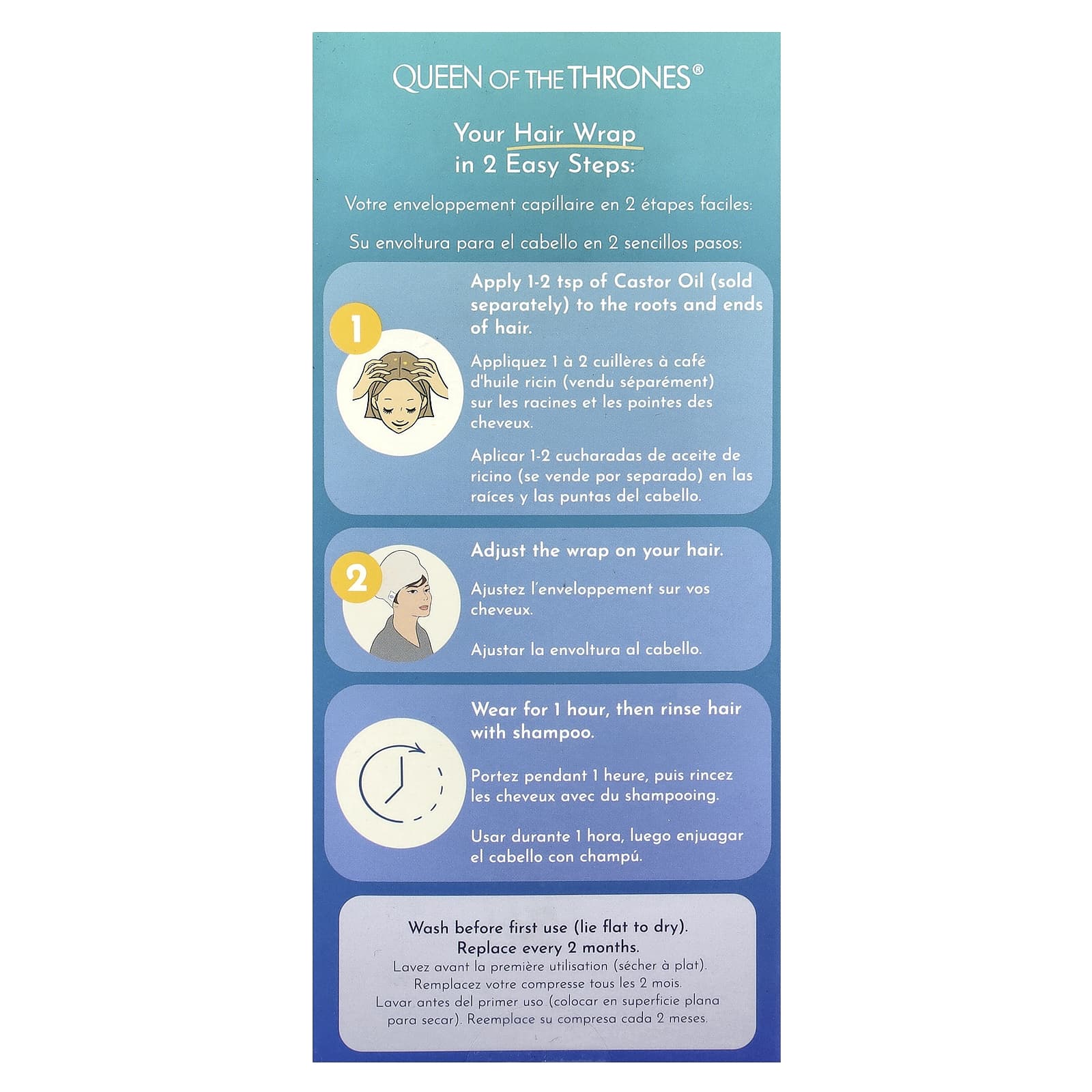 Transforme sua rotina de cuidados com os cabelos com a Máscara Beauty Hair Wrap da Queen of the Thrones®. Essa máscara foi desenvolvida para promover condicionamento e hidratação profundos com Óleo de Rícino Dourado Orgânico (vendido separadamente), deixando seu cabelo com mais brilho e saúde.