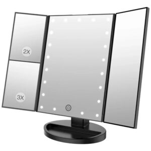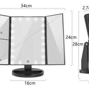 -Modelo de ampliação de 3x: O tríptico possui 3 painéis com diferentes ampliações de 1X/2X/3X, que podem fornecer um amplo campo de visão. Você também pode ajustá-lo livremente para encontrar o ângulo certo para refletir totalmente o rosto. Com ampliação suave de 2x/3x, você pode ver pequenos detalhes claramente.