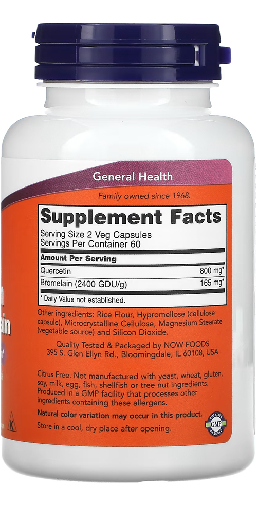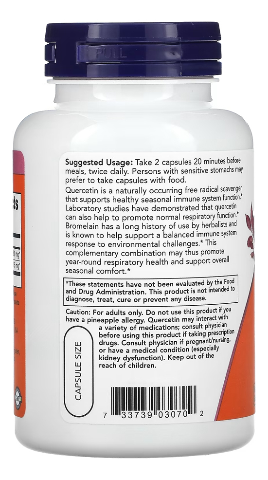 Quercetina 800mg Now Foods Quercetin e Bromelaína 120Veg Cap Composto Vegetal Poderoso Cápsulas Vegetarianas Fórmula Balanceada Complemento Ideal – No Brasil