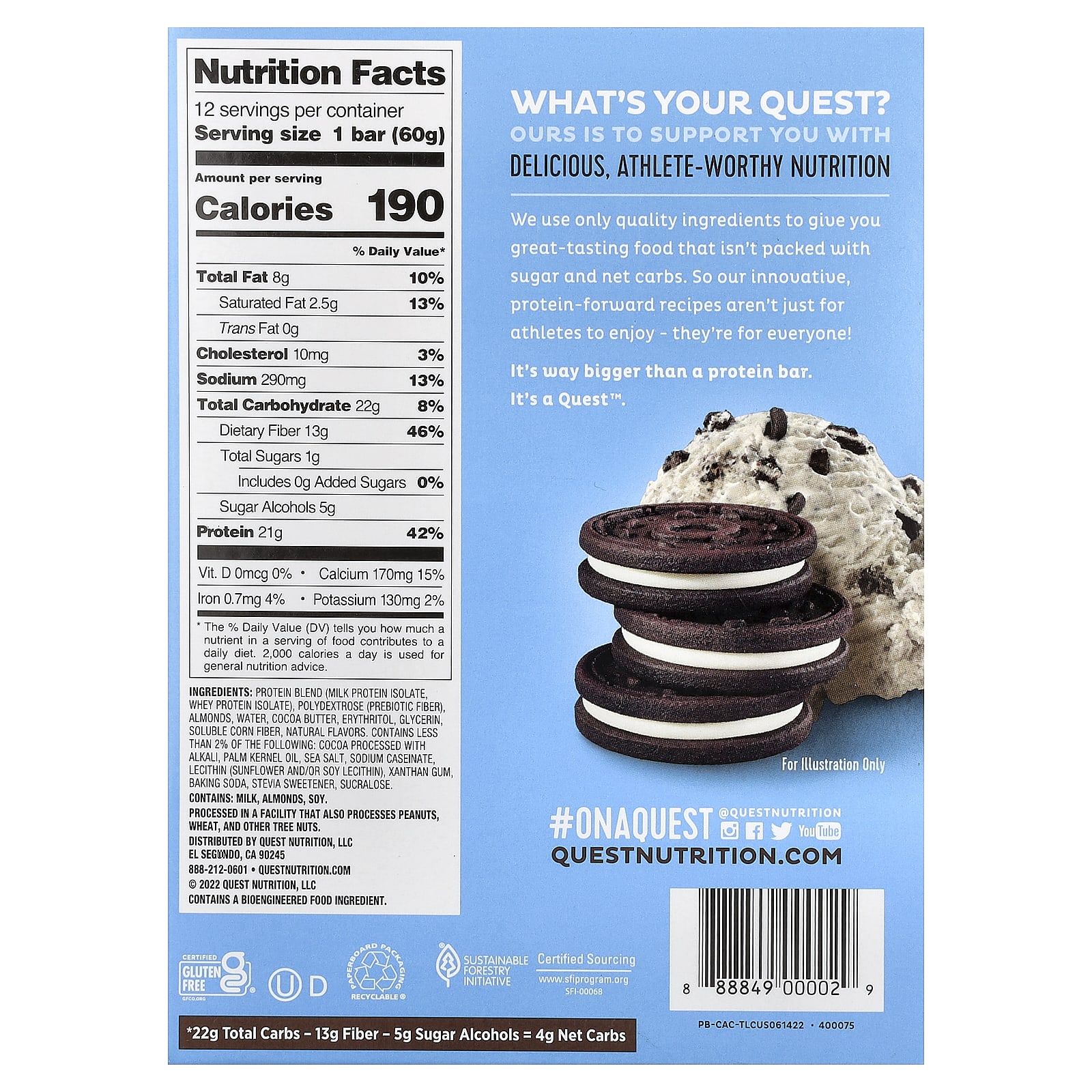 Quest Nutrition Barra de Proteína Biscoitos e Creme 12 Barras 60 g (212 oz) Cada – Quest Nutrition Nutrição Esportiva Barrinhas e snacks esportivos Barras de Proteína Barras de Proteína de Whey.