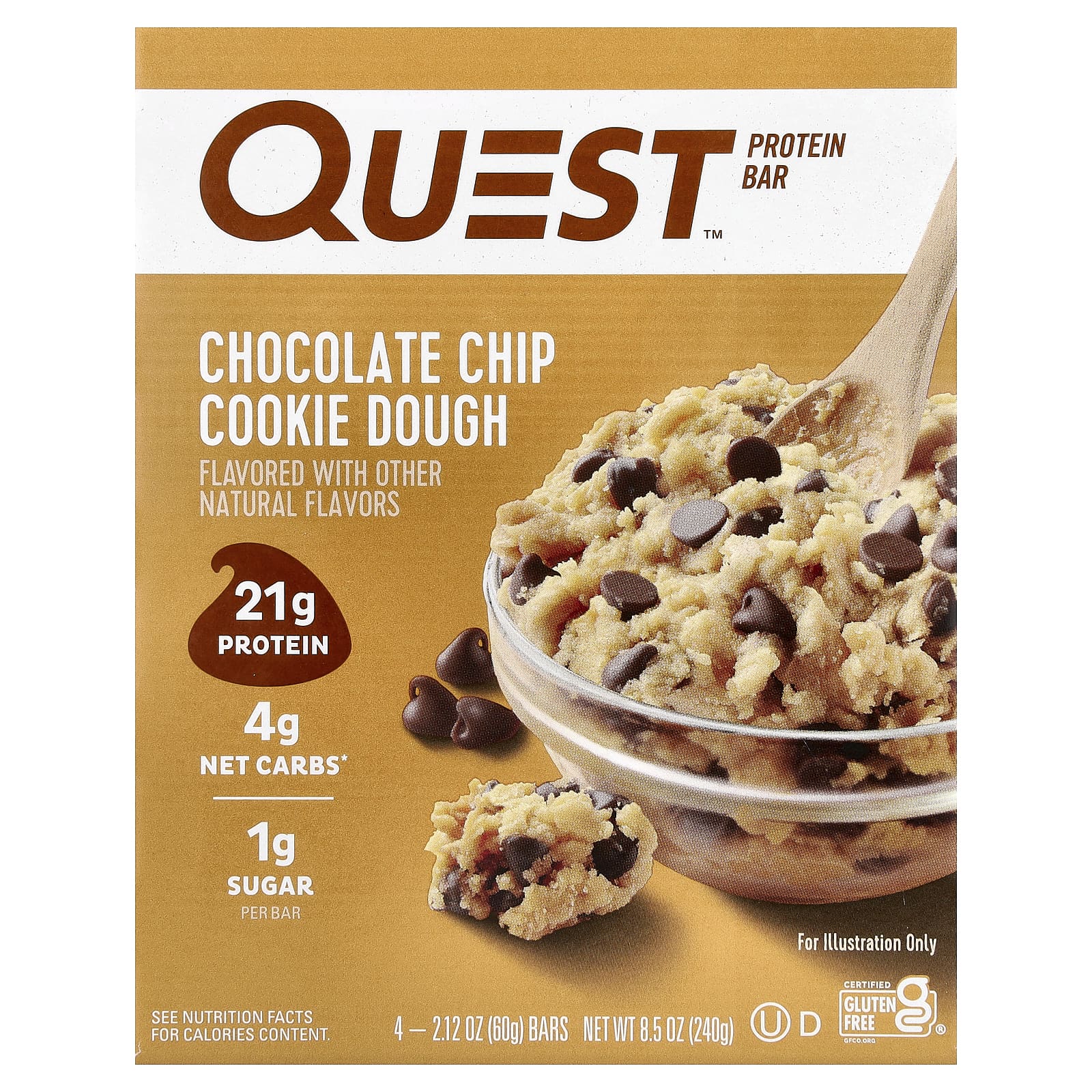 Quest Nutrition Barra de Proteína Massa de Cookie com Lascas de Chocolate 4 Barras 60 g (212 oz) Cada – Quest Nutrition Nutrição Esportiva Barrinhas e snacks esportivos Barras de Proteína Barras de Proteína de Whey.